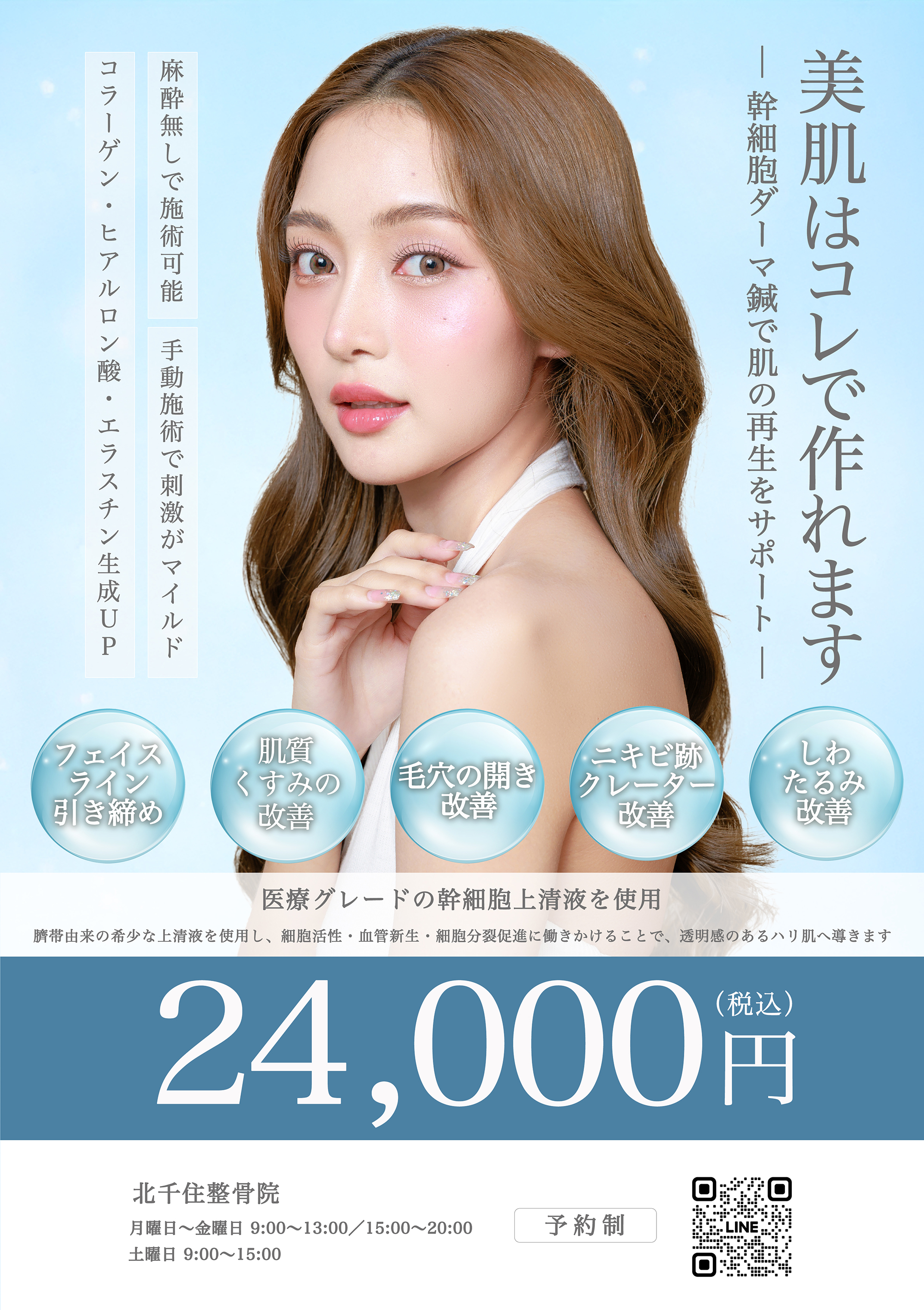 当院で扱う幹細胞上清液は、臍帯由来のフレッシュで高濃度な医療グレード。 細胞活性・血管新生・ターンオーバー促進の働きにより、肌本来の再生力を引き出し、透明感のあるツヤ肌へ導きます。